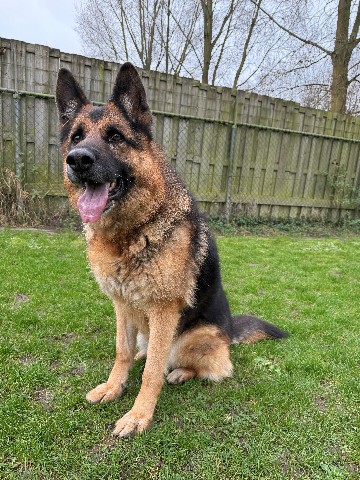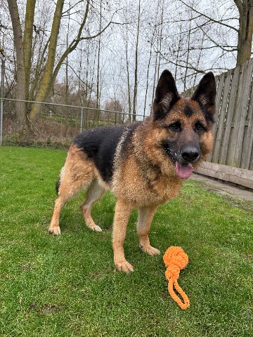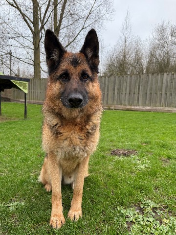 Rambo is een prachtige Duitse Herder van 8 jaar met een groot hart en een trouwe ziel. Hij is bij ons terechtgekomen omdat hij helaas niet meer paste in zijn vorige thuissituatie, maar dat doet niets af aan hoe bijzonder hij is.