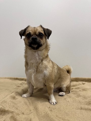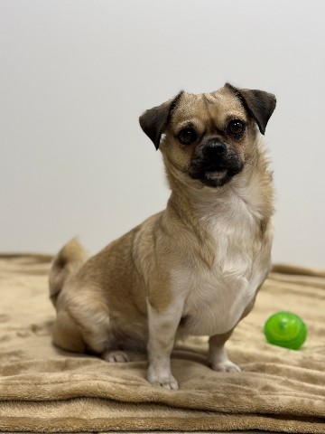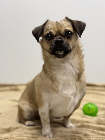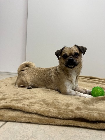 Maak kennis met Daisy, een speelse mopshond kruising van 2,5 jaar jong.
