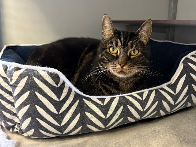 Deze knappe man hebben wij de naam Vito gegeven. Vito is naar schatting een 12-jarige kater en werd op straat gevonden, waarna hij bij ons in het asiel terechtkwam. Hij is een verlegen, gevoelige jongen die tot nu toe een zwaar leven lijkt te hebben gehad. Sinds zijn komst zit hij vooral graag in een veilig hoekje, van waaruit hij de wereld om zich heen rustig observeert.