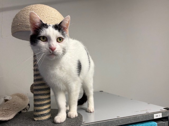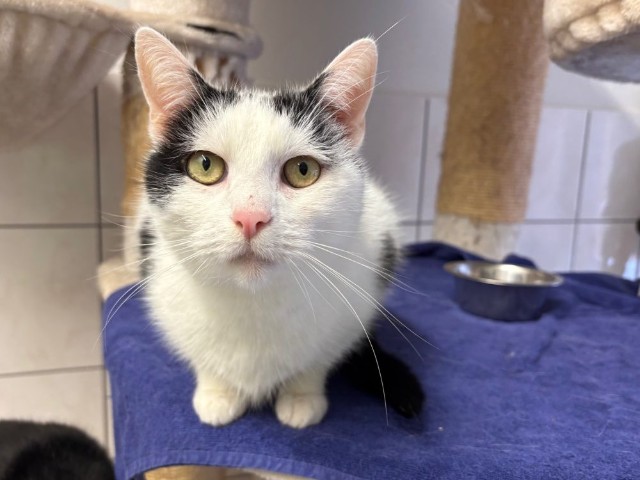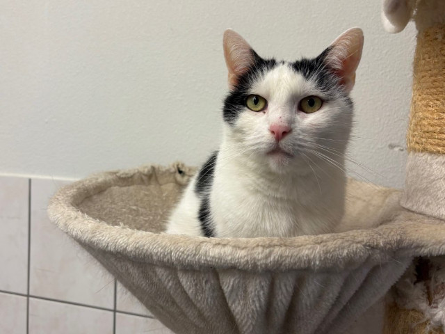 Deze mooie zwart-witte kater hebben wij de naam Buddy gegeven. Buddy is ongeveer 8,5 jaar oud en kwam bij ons in het asiel terecht nadat hij op straat was gevonden. Ondanks alles wat hij waarschijnlijk heeft meegemaakt, laat hij zich van een zachtaardige kant zien. Buddy is geen allemansvriend, maar zeker ook niet extreem schuw. Hij kijkt graag de kat nog even uit de boom, maar toont steeds meer interesse in contact.