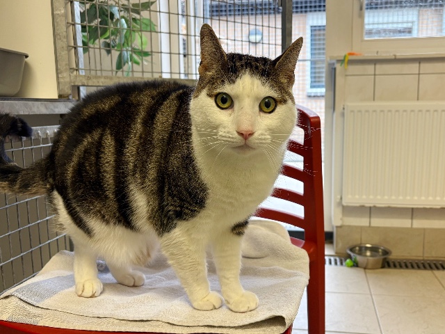 Andere katten lijkt hij ook eng te vinden en dus voor hem een huis alleen.