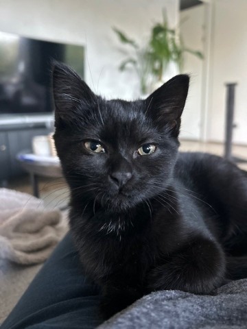 Loïs is een prachtige, elegante zwarte dame met een zijdezacht vachtje, een mooi rond koppie en schitterende karamelkleurige ogen. Ze weet heel goed wat ze wil – en minstens zo goed wat ze níét wil. Precies dat maakt haar zo’n bijzonder karakter.