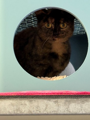 Dit mooie schildpadpoesje van bijna twee jaar oud heet Hendrika. Samen met haar vier kittens werd ze op straat gevonden en door de dierenambulance naar ons gebracht. Wat ze allemaal heeft meegemaakt, blijft een raadsel, maar duidelijk is dat ze het niet makkelijk heeft gehad. Haar kittens hebben inmiddels allemaal een fijn thuis gevonden, en nu is het eindelijk tijd dat ook Hendrika haar eigen veilige plekje krijgt.