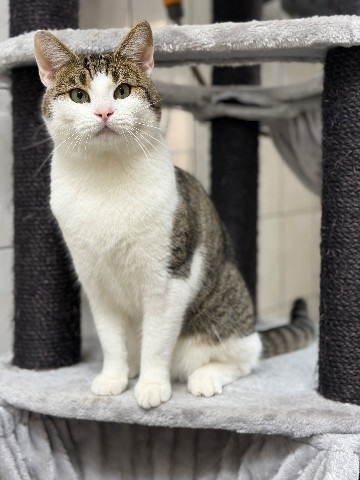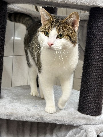 Dit ondeugende koppie hoort bij Brutus. Brutus werd op straat gevonden en bij ons binnengebracht, maar helaas is zijn vorige eigenaar niet meer voor hem teruggekomen. Hij is even weggeweest maar helaas weer terug bij ons. Nu is deze charmante cyper-witte kater van bijna 4 jaar op zoek naar een nieuw thuis waar hij niet alleen veel liefde krijgt, maar ook voldoende uitdaging om zijn speelse energie kwijt te kunnen. Want één ding is zeker: Brutus zit nooit stil en heeft altijd wel iets in zijn hoofd.