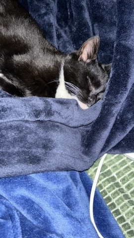 Handen en snelle bewegingen vindt hij nog spannend, waardoor hij soms wegloopt. Wel durft hij inmiddels op een deken bij je in de buurt te komen slapen, wat een mooie stap vooruit is.