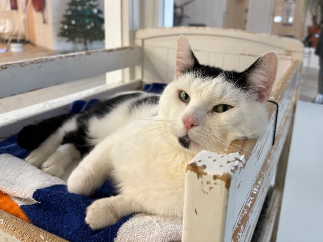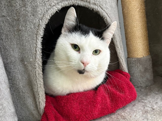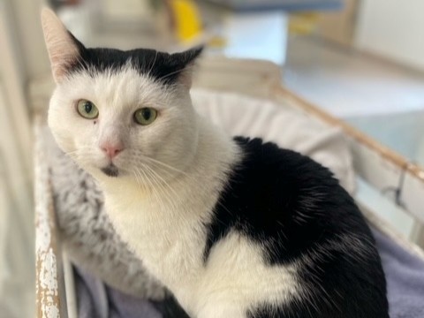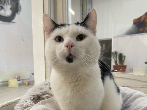 Deze charmeur met de zwoele oogopslag hebben we Adam genoemd. Hij is op straat aangetroffen en niemand lijkt hem terug te willen. Dus gaan wij op zoek naar een nieuwe plek voor hem. De eerste dagen kon hij zijn ei niet kwijt maar inmiddels zit hij in de ruimte bij de andere katten en zien we meer van wie hij echt is: een enorm(e) vriendelijke, vrolijke kater. Adam heeft veel energie en kan in zijn enthousiasme wat lomp doen. Hij geeft het goed aan met zijn lichaamstaal dus wie hem goed “leest” zal prima met hem door een deur kunnen maar hij is niet geschikt als gezinskat. Ook is het belangrijk dat hij op termijn naar buiten kan zodat hij zich daar kan uitleven.