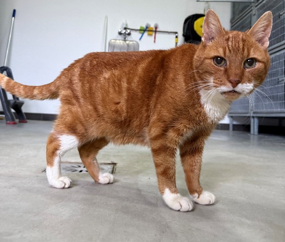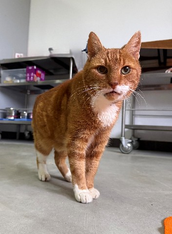 Dit lieve oude koppie is Theo. Theo is een prachtige rood-witte kater die op straat werd gevonden en bij ons werd binnengebracht. Helaas is zijn vorige eigenaar hem nooit meer komen ophalen. Theo is een senior kerel van 14+ die op zoek is naar een warm en rustig thuis om van zijn gouden jaren te genieten, met een warm mandje en een zachte bank, natuurlijk.