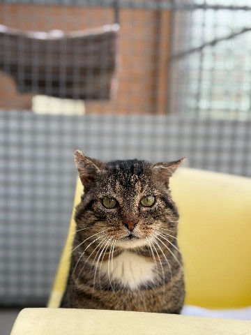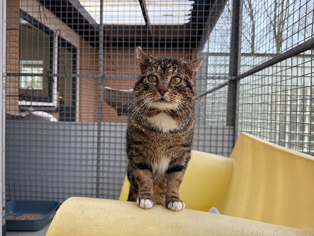 Hij blijft voortaan binnen, en daar lijkt hij zelf ook helemaal tevreden mee. Een warme slaapplek, een rustig huis en af en toe een gezellig “gesprek” met zijn mens zijn precies wat hij zoekt. Toch zou hij het heerlijk vinden om af en toe een frisse neus te halen, dus een afgezet balkon zou hij fantastisch vinden.